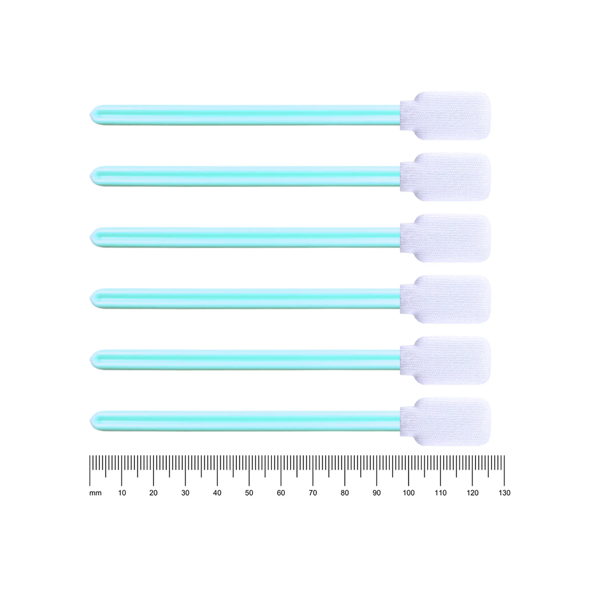 Unlike adhesive-based swabs, the large rectangular polyester swab features thermal bonding, eliminating potential contamination from glues. The light green polypropylene handle is chemical resistant and embossed for easy identification. It is manufactured using precision automated processes to guarantee consistent sizing and cleanliness across every swab.